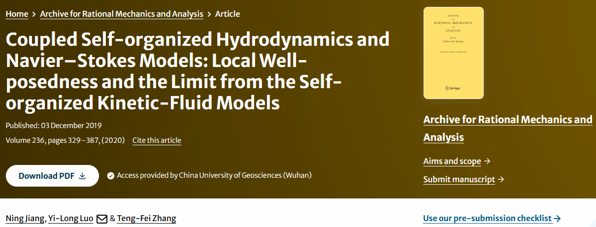 Archive for Rational Mechanics and Analysis杂志创刊于1957年,由Springer出版,主要出版流体力学、数学物理偏微分方程、力学系统的稳定性和控制等领域中的重要进展,是国际数学界公认的应用数学国际顶尖学术期刊,在学术界享有极高的声誉。
